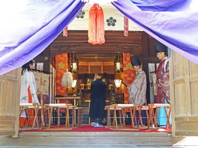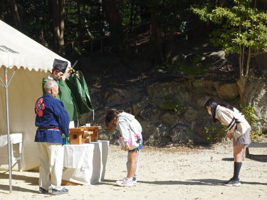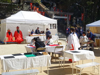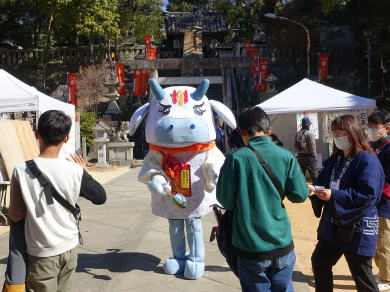 ユルキャラ 天満社のおつかい「にじもっち」 授与所 天狗も参加