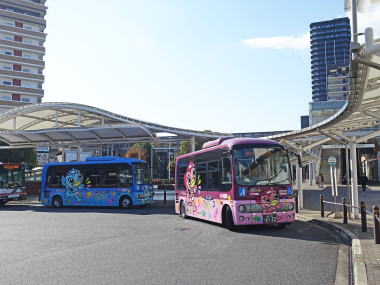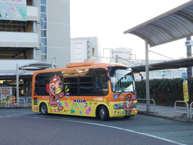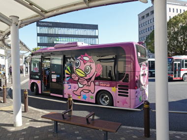 「あい愛バス」ハートにタイヤが付いた?デザインは一般公募だったらしい。