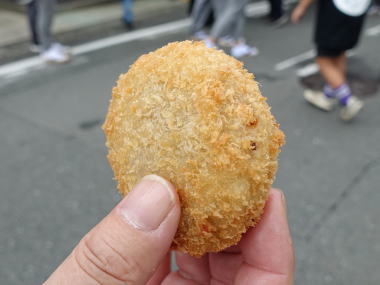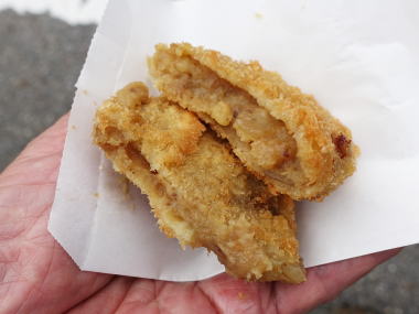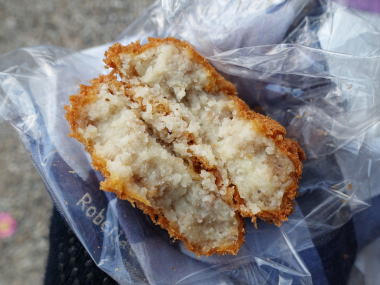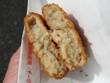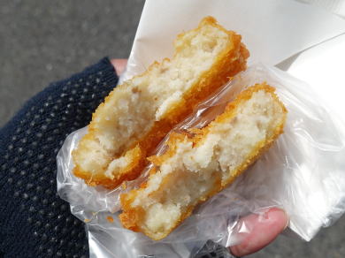地元名産・海老芋を使った富田林コロッケ。プレーンとチーズ入りがありプレーンを選んだ。