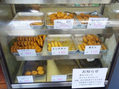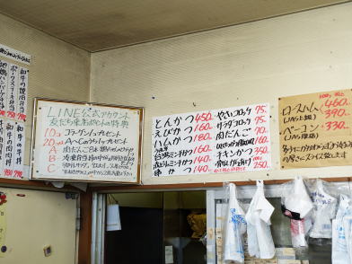 メンチカツ、ハムカツがある。店主さん御自愛の上、続けて販売してください。斑鳩