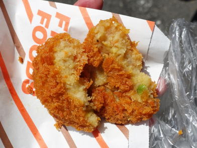 脇で「和牛ビーフコロッケ」を食べた。黒毛和牛、北海道産じゃがいも、淡路産