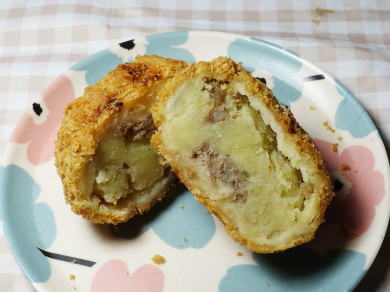 今回はコロッケ!潰されていないポテトが一部混じっていてほんのり