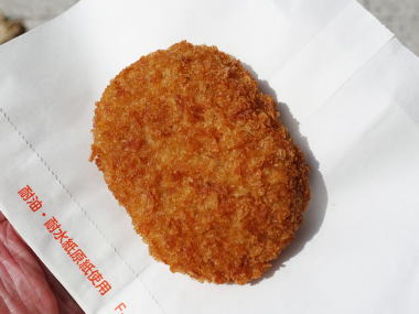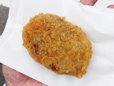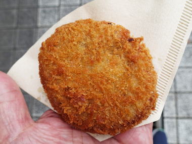 精肉店があった。店主は意外と若く、時間外だったがコロッケ1個揚げて
