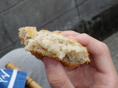 衣サクサク。店頭に観光客用のベンチがありそこで食べている人もいる 70円(税込)’18.09