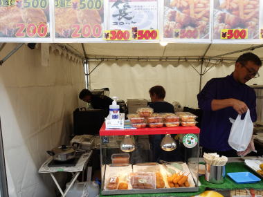 だんじり祭りで知られる岸和田のソウルフード 80円(税込)’16.09 店舗前をだんじりが走る。