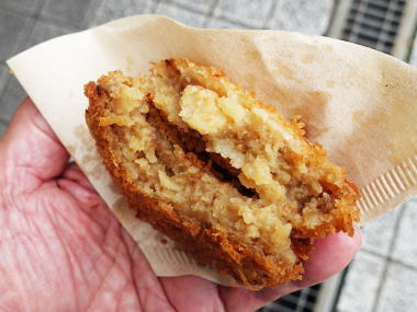 訪れたのはPM2:30頃でコロッケの仕込み中。お願いして1コ揚げて