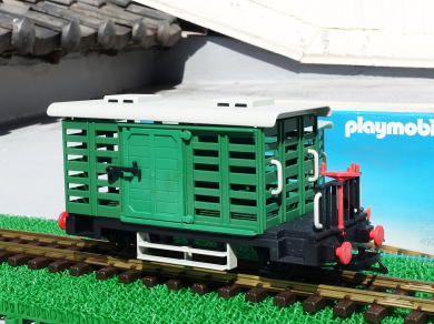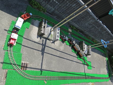 場合は効果が有るがGゲージには効果が無い様だ。貨車はプレイモビル製。