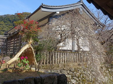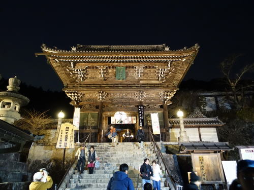 通常2月は16:30で閉門 後方 登廊と本堂屋根