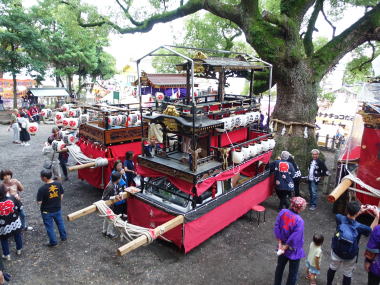 境内 整列 左から大道車 本町車 宮本車 廻間車
