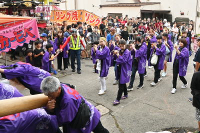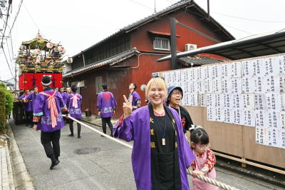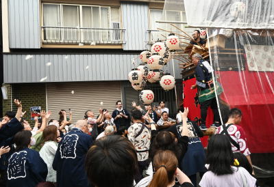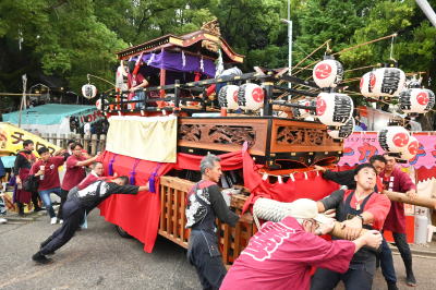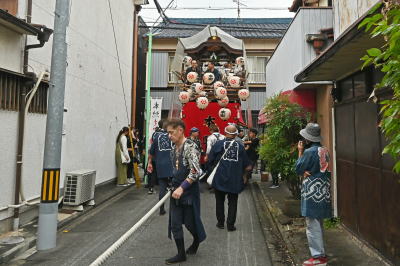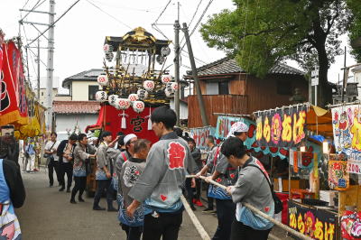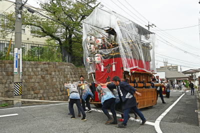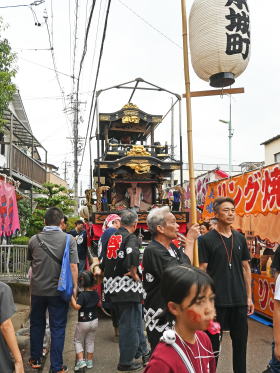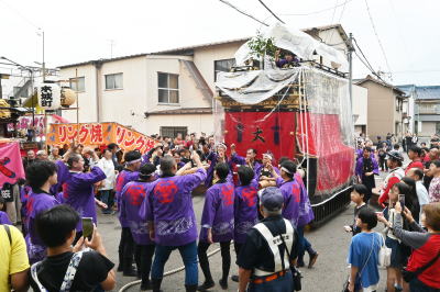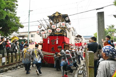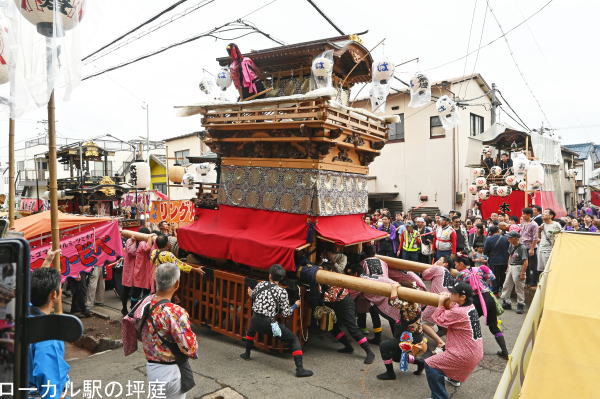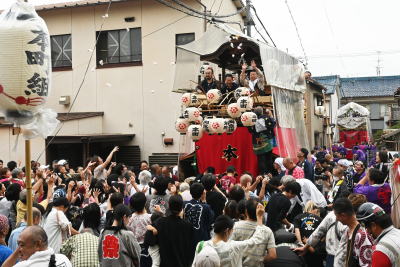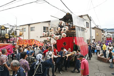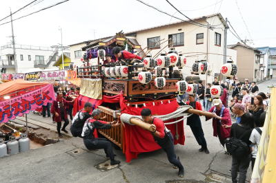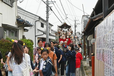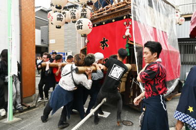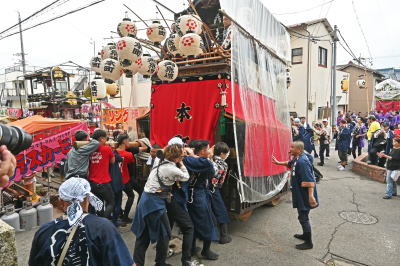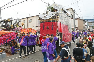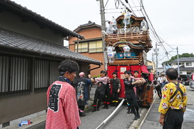 身近な所にこんな祭があって驚きました。狭い曲がりくねった道を行く山車は
