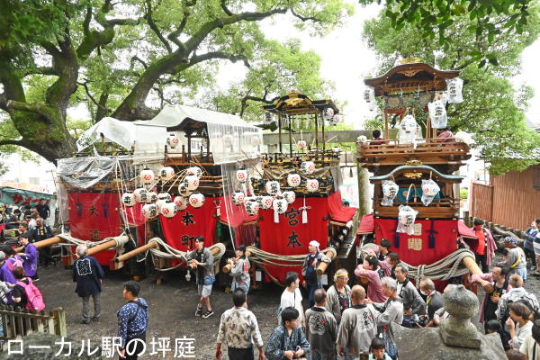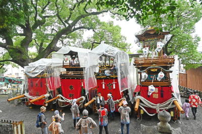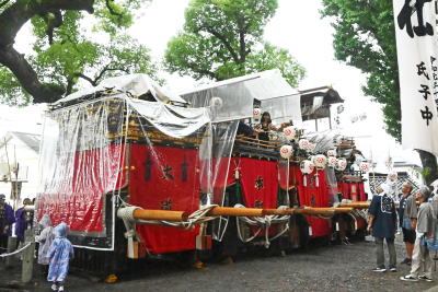 本城車 宮前 宮本車(右)と本町車(左)後方大道車