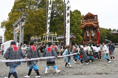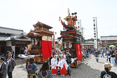 八幡社の祭礼で昼前後は二山同時巡行する