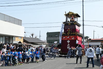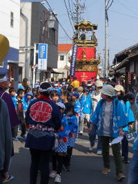 山車だったが明治期に各地区の神社に別れた。昭和30年代に山車曳きが