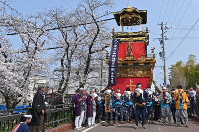 市内を流れる五條川堤(さくら名所百選)で桜まつりが毎年行われる。山車も協賛で