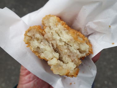 男爵コロッケ1コ揚げてもらった。玉葱の甘みが加わって良い 129円 ’25.03