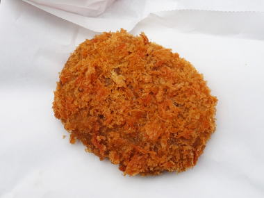 ご覧のように野菜コロッケでやや大ぶりで厚みがあるので大きい。久し振りでこれも