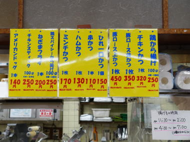 揚げ物は他にメンチカツ、串カツ、唐揚げ(鶏)がある