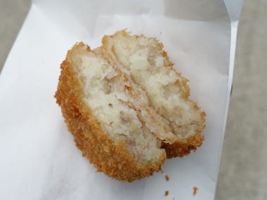 コロッケは柔らくてクリーミー、玉葱が少し入っている 100円 ’21.06