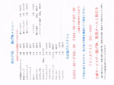 揚げ時刻は AM11:30~PM2:00 PM4:00~PM7:00(土曜日はPM6:30)