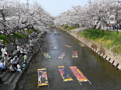 五条川 下画像の中島屋さんが鯉幟を晒す図案で「桜まつり」の時のみ行われる