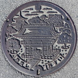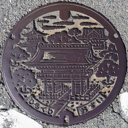 あま市 甚目寺観音 あまし おすい 小型 旧甚目寺町 甚目寺観音 じもくじ おすい 側溝蓋 JIMOKUJI 甚目寺の上水道は名古屋市上下水道局の給水区域 甚目寺観音 南大門(重文) ’12.11 令和の大修理中 ’26.02