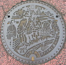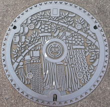 安城市 アンフォーレ内安城市図書館で配布 童話作家「新美南吉」著「花のき村と盗人たち」の一場面 ノンカラー 七夕まつり 中央市章内に汚水 小型 七夕まつり おすい 中央市章内に汚水 外枠に ANJO CITY あんじょう おすい 消火栓 仕切弁 市章