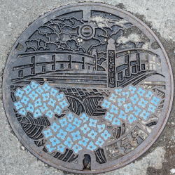 空気弁 市章 「あじさいばし」(形原温泉)と紫陽花
