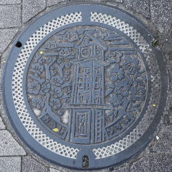 消火栓 町章は隣の三郷町 信貴山朝護孫寺仁王門前にて
