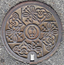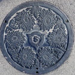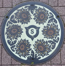 「ひまわり」市章の中にS(汚水) ノンカラー 下水道 汚水