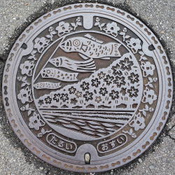 仕切弁 側溝蓋 市章 市の花「椿」 カラー