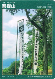 相川 シーズンになるとJR車窓から見える 役場で頂いた「菩提山」カード 竹中氏の居城