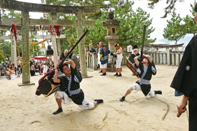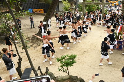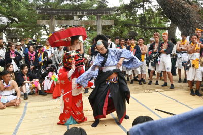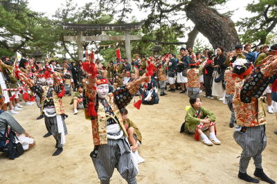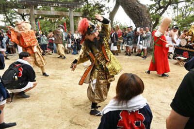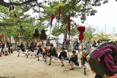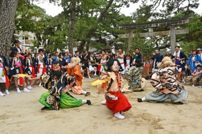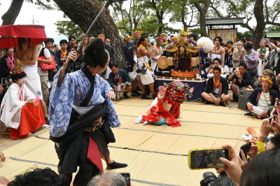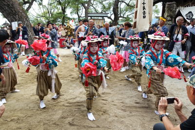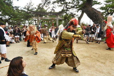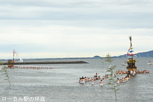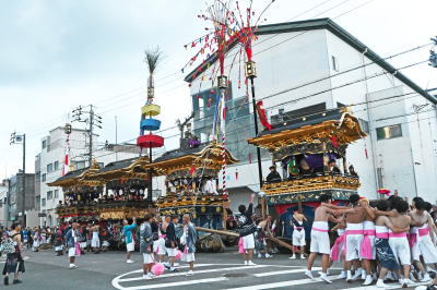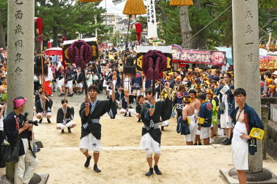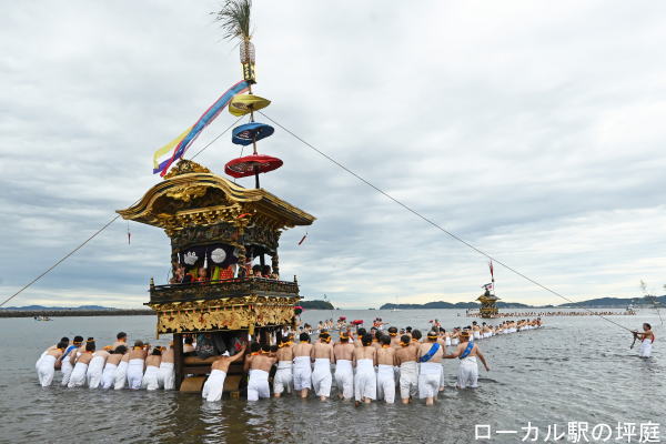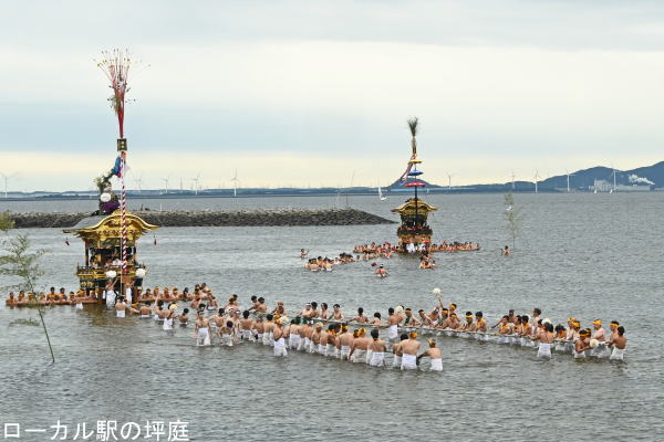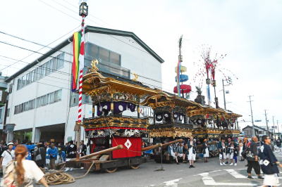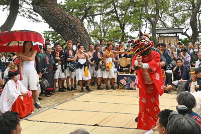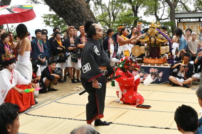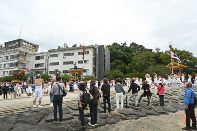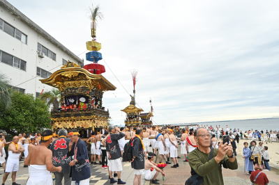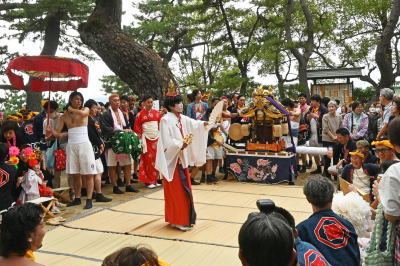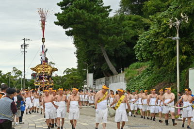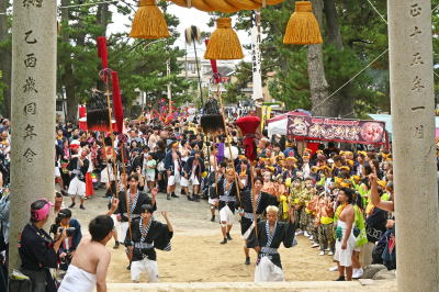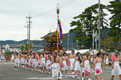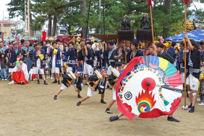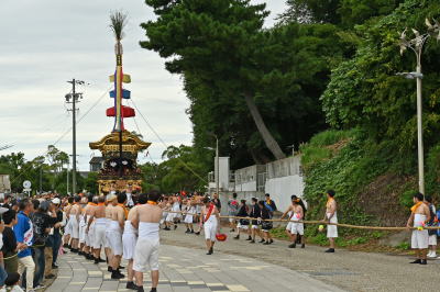 三百年以上の歴史を持つ祭。「剱の山車」が途中から不参加、海中渡御が中止に