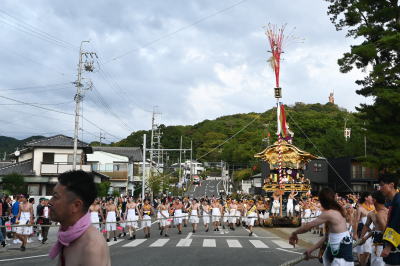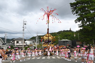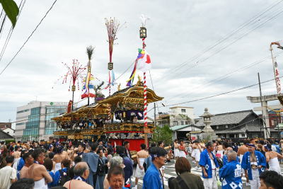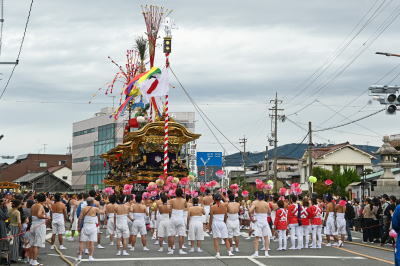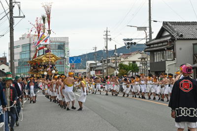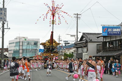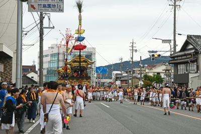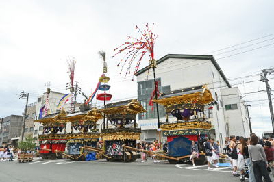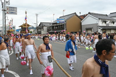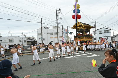 八剱神社前に向かう「恵比寿の山車」西区 「花山車」中区