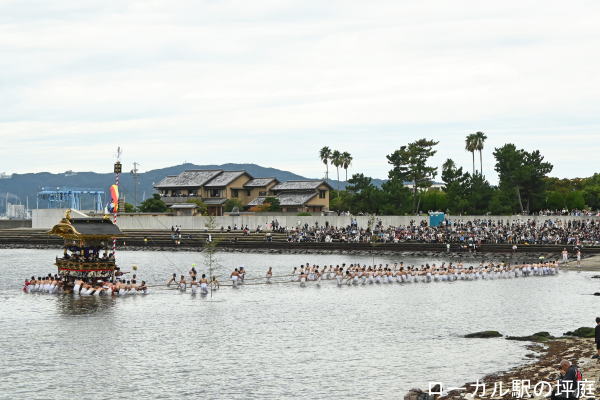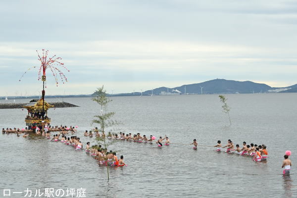 海中渡御が有るので出掛けたが海辺には地元民が大勢来ていた。見応え十分!