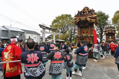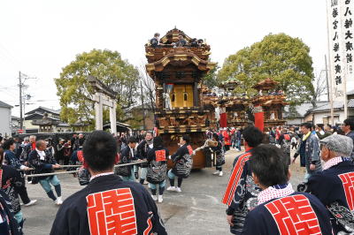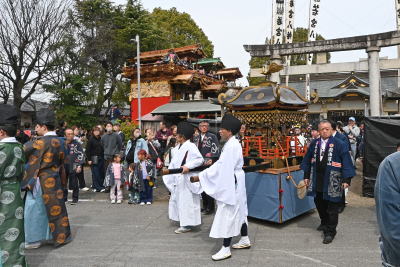 山車は八幡社から若宮社へ神輿渡御を供奉し警護するために曳かれる