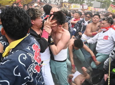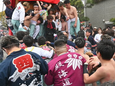 八幡社前の坂で若衆が一番楫奪い合う様子から「けんか祭」とも言われる ’26.03.22