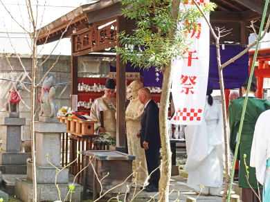 氏子代表と狐が玉串を奉げる