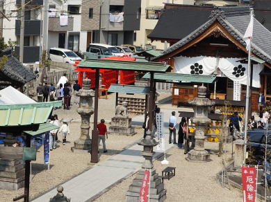 旧美濃路沿いにあり信長は桶狭間の戦いの戦勝祈願し、勝利後ここを通って清須城に凱旋したと伝わる
