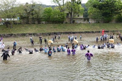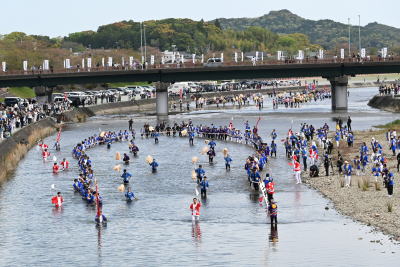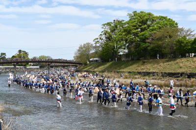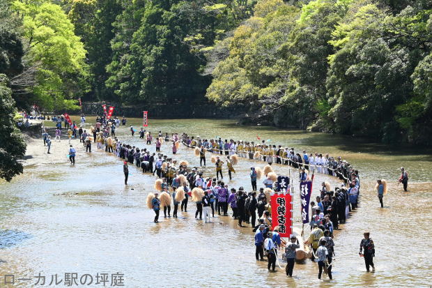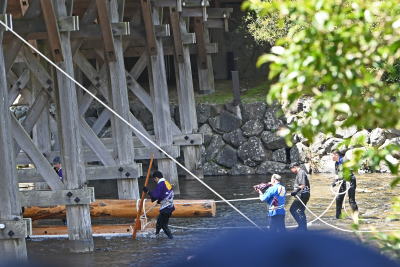 迎える神官、小匠、職員 宇治橋をわたって五十鈴川へ