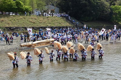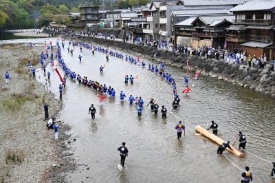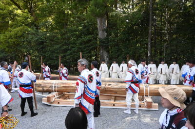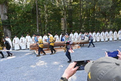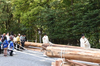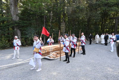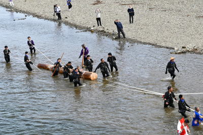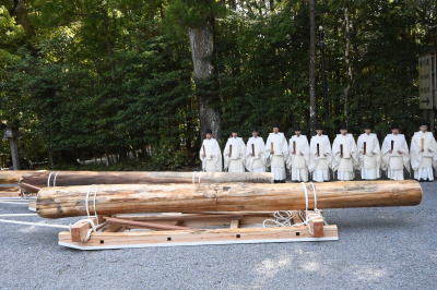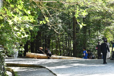 川曳きで内宮に奉曳しました 13日に陸曳きで外宮に奉曳します