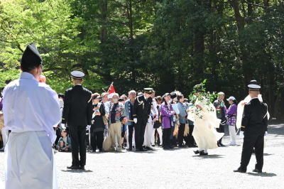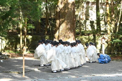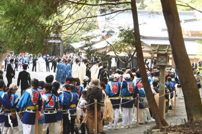 神楽殿前(風日祈宮への道)で神宮側に引き渡し この後、神宮職員が五丈殿へ移す
