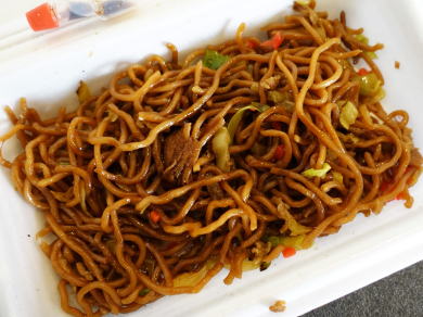 後半、添付のソースを掛ける。酸味のあるソースで普通の焼きそばになる 570円 ’26.03
