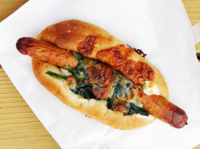 「ホウレン草とソーセージのグラタンフォカッチャ」私の大好きなソーセージパン