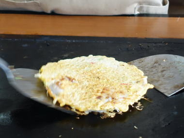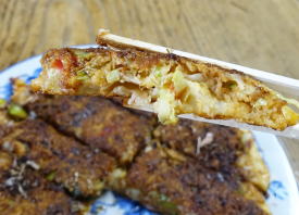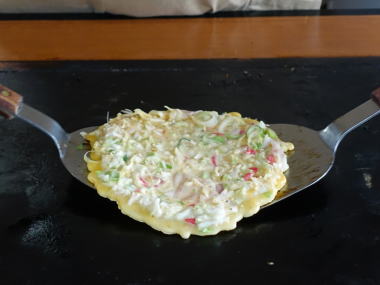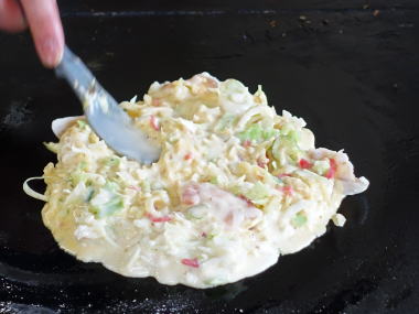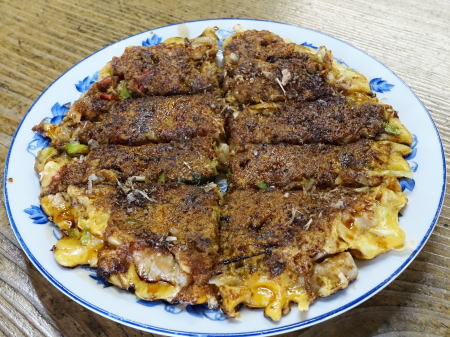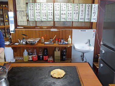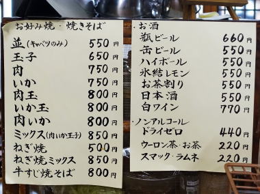 少ない。お好み焼き肉玉を選んだ。関西式の混ぜて焼くタイプで