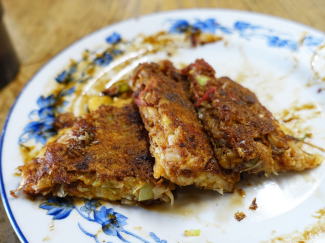 様で衣は薄くクリームコロッケ形。スパイシーで大将の拘りの一品 100円 ’23.05