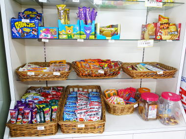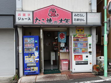 小さな店。駄菓子とみたらし(一本80円)とたこ焼き(4コ160円)