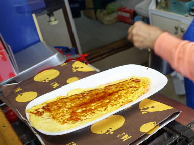 折らずに食べた 100円 ’25.10 絶滅危惧種の店で玉子が1P300円を