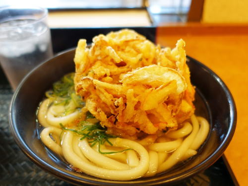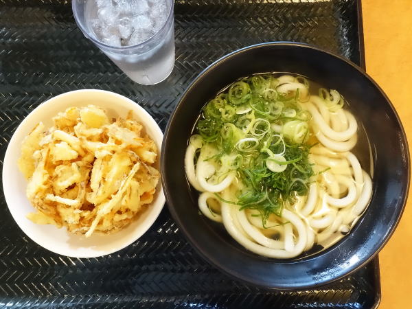 かけうどんとかき揚げを選んだ。久し振りの讃岐うどんでコシがあって良い。