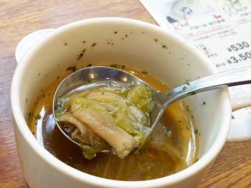 ハンバーグは美味しく各種野菜が入ってヘルシー。スープはキノコが