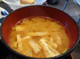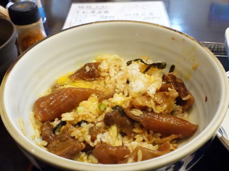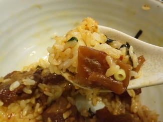 混ぜて一気に食べた 具は油揚げ、大根、ネギ